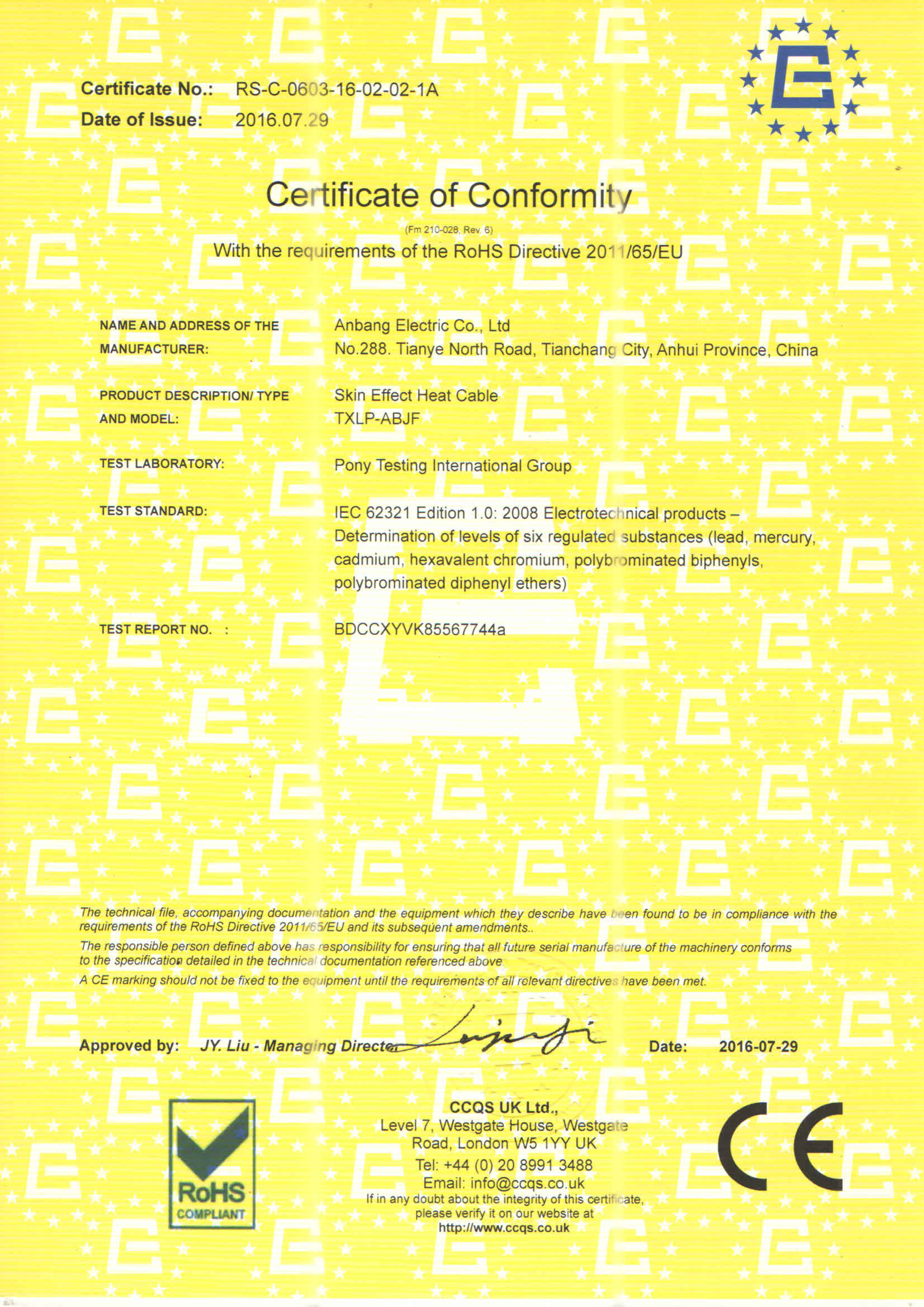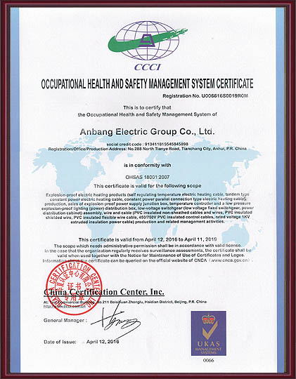 安邦電氣股份有限公司,總部位于北京市長安街,成立于2004年,注冊資金10088萬。安徽生產基地占地面積63000平方米,擁有66套各類生產線,其中進口生產線6套。國家高新技術型企業(yè),滁州市市長質量獎企業(yè),專精特新“小巨人”企業(yè),擁有國家知識產權局授權的45項專利,其中發(fā)明專利28項 , 主筆《太陽能熱利用自限溫電熱帶安裝規(guī)范》行業(yè)標準,參編《自限溫電伴熱帶》國家標準、《工業(yè)和商業(yè)用電阻式伴熱系統(tǒng)》國家標準、《太陽能熱利用自限溫電熱帶》行業(yè)標準、《爆炸性環(huán)境 電阻式伴熱器》國家標準等7項國家標準。企業(yè)通過UL認證,國家強制性 CCC產品認證,ISO9001質量管理體系認證,ISO14001環(huán)境管理體系認證,ISO45001職業(yè)健康安全管理體系認證,Q/SHS0001.1健康、安全與環(huán)境管理體系認證,歐盟防爆ATEX認證,歐盟CE認證,RoHS認證,俄羅斯海關聯盟認證,國家防爆電氣CCC證書。產品系列:集膚伴熱系統(tǒng)、電伴熱系統(tǒng)、電加熱器、電地暖系統(tǒng)、集儀器儀表、電線電纜、高低壓配電柜(箱)、電纜橋架、閥門管件等等設計、制造、銷售。產品應用于航天航空、軍工、石油、石化、天然氣、機場、化工、鋼鐵、隧道、消防、養(yǎng)殖、融雪化冰、室內供暖、國家電網及眾多電廠等等國家重點工程。出口美國、英國、德國、俄羅斯、韓國、日本、哈薩克斯坦、烏克蘭、伊朗等眾多國家。